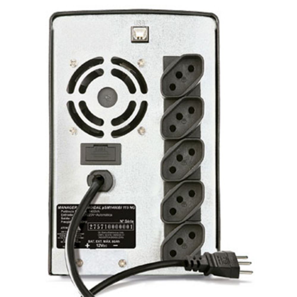 ..- Nobreak SMS Manager III Senoidal de 1.5 KVA (975 W), senoidal de simples conversão, entrada bivolt e saída 115V.