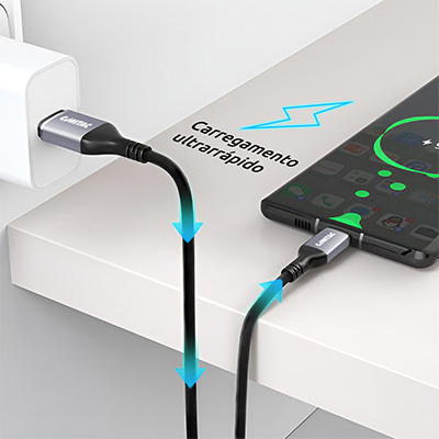 - Além disso, o cabo é compatível com o DisplayPort Alt Mode, permitindo transmissão de áudio e vídeo com resolução de até 4K, ideal para conectar monitores e telas adicionais (desde que o dispositivo de origem suporte essa função).