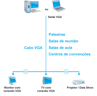 - Conecta desktops e notebooks a monitores LCD, projetores Data-Show, TV LCD, TV de Plasma entre outros aparelhos com conexão VGA.