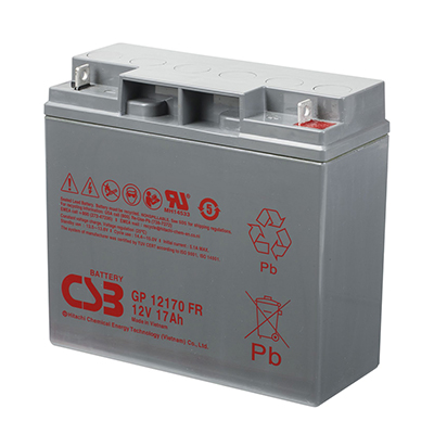 - Bateria CSB modelo  CSB GP 12170, 12 V (80 W) e corrente de 17 Ah original para troca e reposição nos nobreaks APC modelo SMC 2200 e 3000, SUA3000, SMS Atrium 2200, Power Sinus NG 3200  e Station II, NHS e Ragtech.