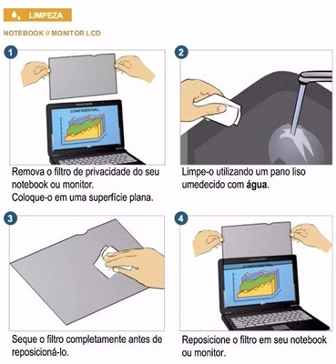 - Verifique as medidas (Largura e altura) da área visível do seu monitor/notebook antes de escolher o tamanho do seu filtro de privacidade 3M.