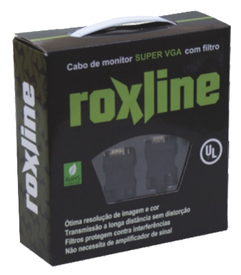 - Cabo de monitor super VGA Roxline de 20 metros de extensão com filtro que protege contra interferências.