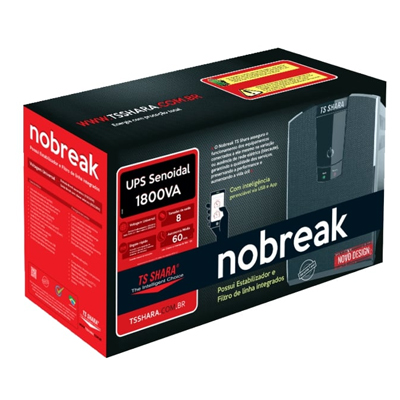 - Nobreak microprocessado TSHSARA UPS Senoidal Universal 1800 VA (1260 W) com entrada Bivolt automático 115 V / 220 V e saída 115 V ou 220 V (selecionável manualmente via chave comutadora).