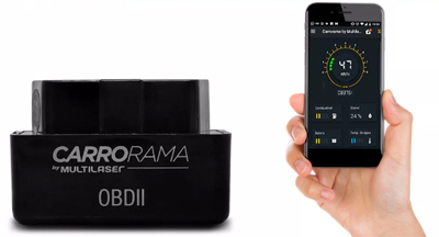 ..- Scanner Automotivo Bluetooth OBDII CARRORAMA Multilaser, que transforma o smartphone em um computador de bordo trazendo dados do veículo por meio das informações obtidas pela porta OBD (on-board diagnostic).