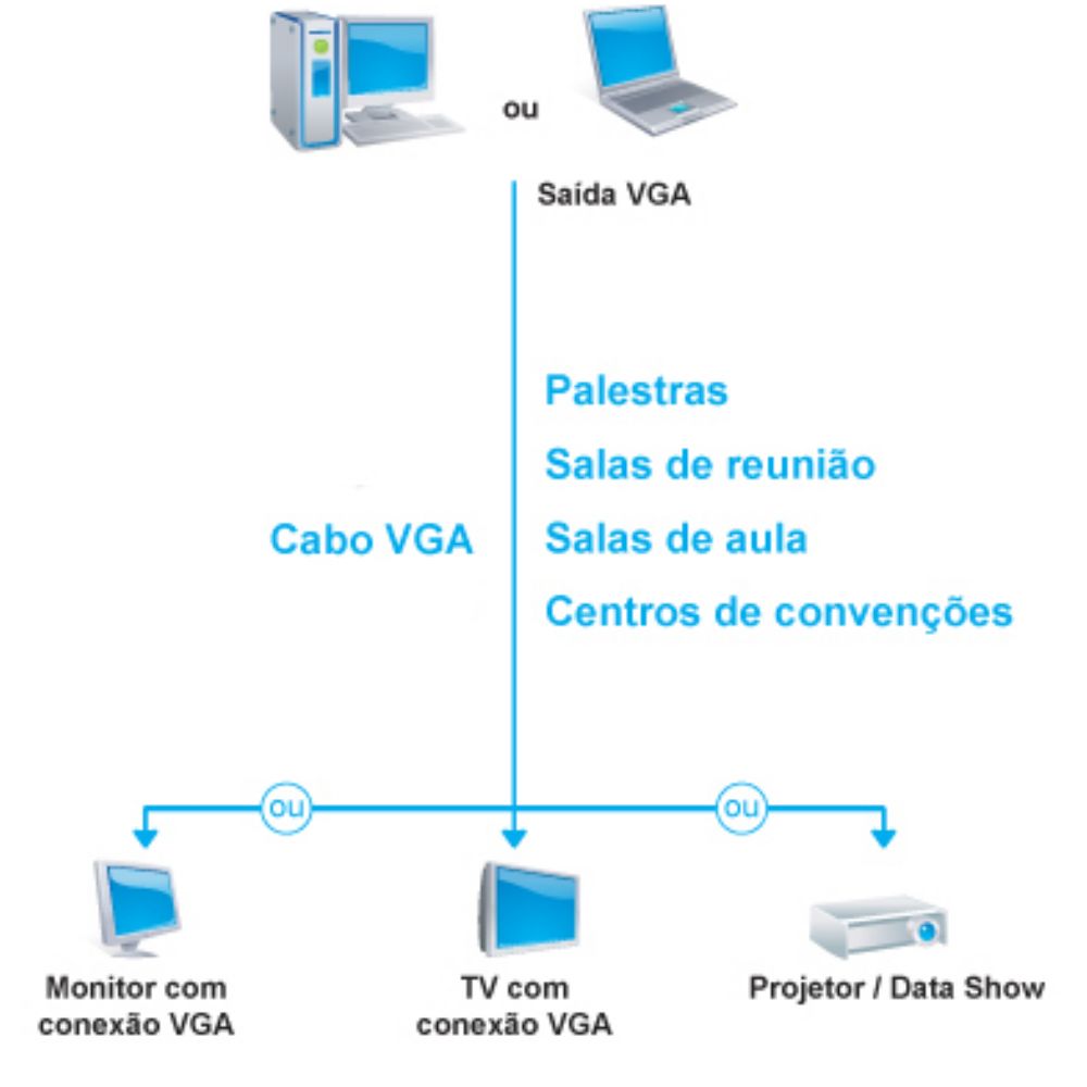 - Conecta desktops e notebooks a monitores LCD, projetores Data-Show, TV LCD, TV de Plasma entre outros aparelhos com conexão VGA.