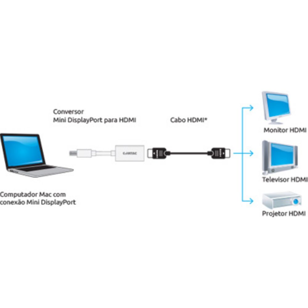 - Permite a conversão da porta Mini DisplayPort para HDMI (áudio e vídeo), proporcionando imagens nítidas, brilhantes e excelente qualidade de som.