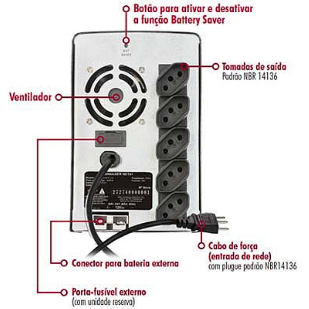 - Cabo de força com plugue no novo padrão p/ se ligar em 1 das saídas do nobreak
