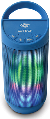 ..- Speaker Bluetooth C3Tech SP-B50BL Beatcom conexão sem fio, Bluetooth 2.1, permitindo ouvir musicas e atender a ligações do smartphone.