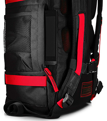 - Dispõe de bolso lateral com zíper para pequenos objetos, bolso externo com zíper na tampa superior da mochila e bolso lateral em rede para garrafas.
