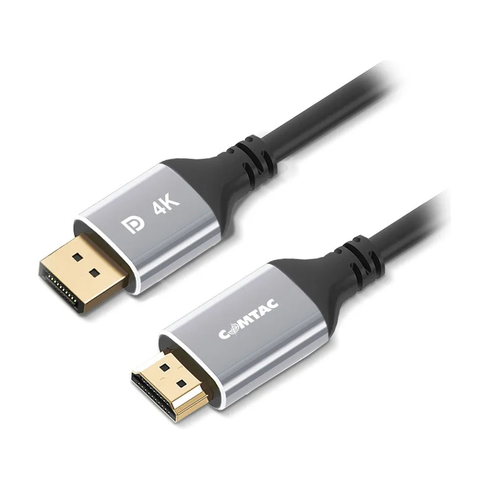 ..- Cabo adaptador DisplayPort para HDMI Comtac com resolução Ultra HD (4K a 30Hz) que permite conectar PCs a monitores ou TVs HDMI.
