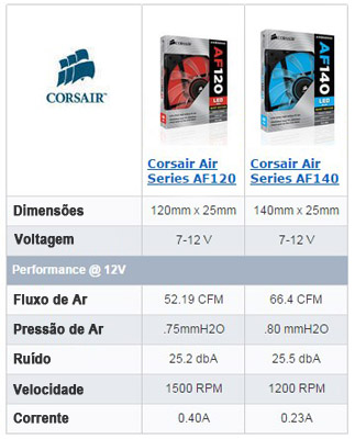 ..- Ventilador Corsair AF140 Quiet, com sistema avançado reduzindo os ruídos a 25,5 dBA.