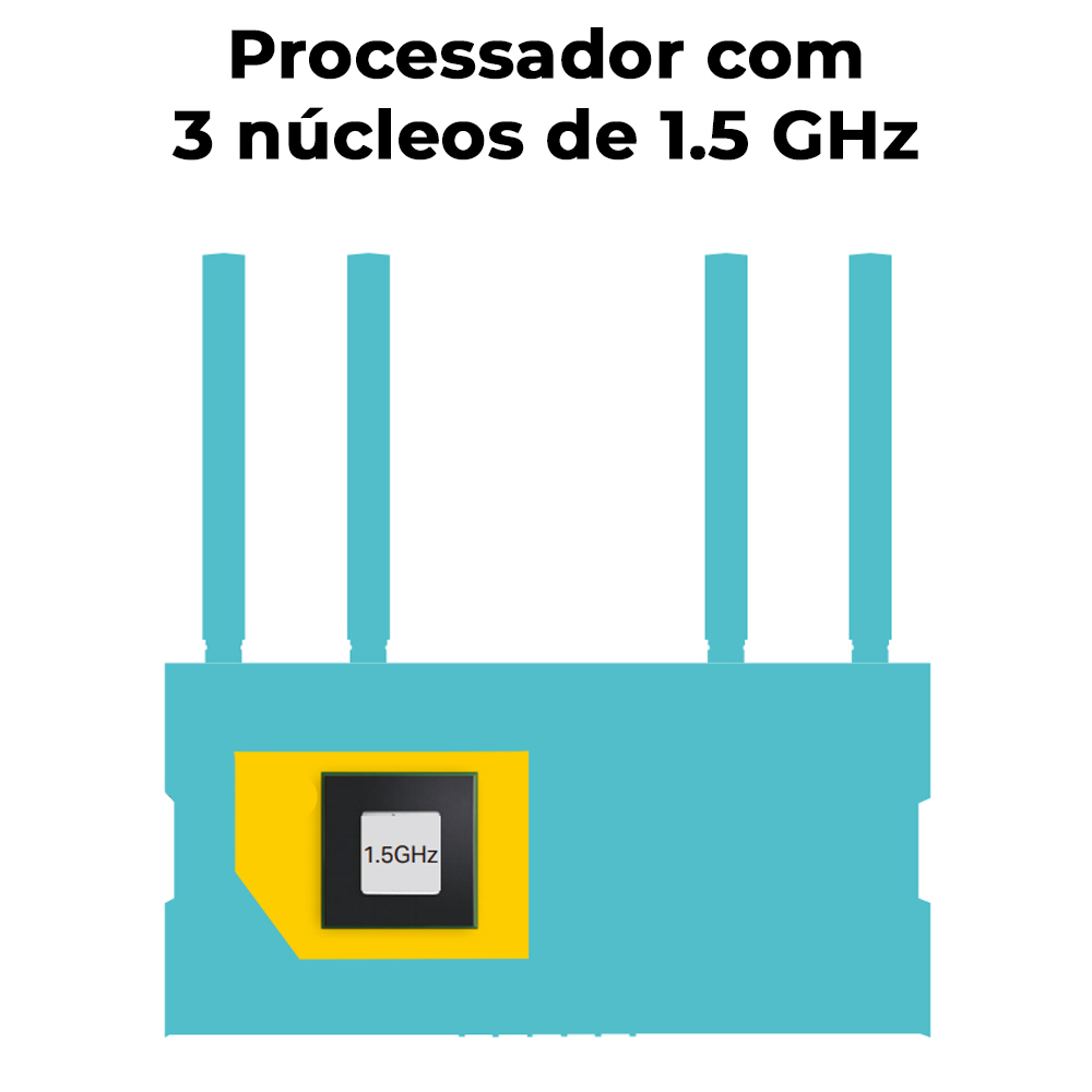- Processador com 3 núcleos de 1.5 GHz que fornece desempenho impressionante para lidar com grandes quantidades de transferência de dados, minimizando a latência na sua rede.