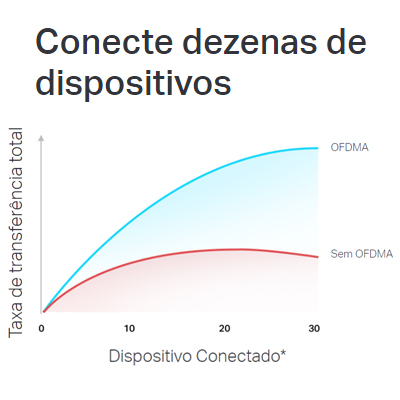 - Permite que vários dispositivos usem uma única banda ao mesmo tempo, permitindo que o seu Wi-Fi suporte mais dispositivos com OFDM e MU-MIMO.