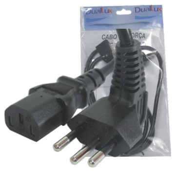 Cabo de força p/ PC c/ plugue 90 graus, Duallux com 3m