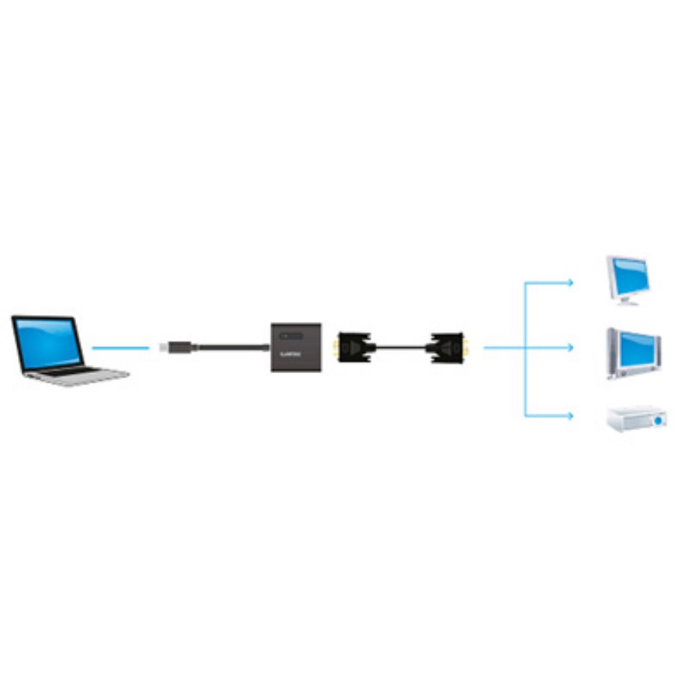..- Conversor USB-C 3.1 macho para VGA fêmea Comtac 9329, que possibilita a conexão entre um computador com porta USB-C a um monitor externo, TV ou projetor com entrada VGA (apenas vídeo).