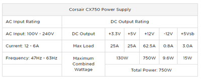 ..- Fonte de alimentação Corsair CX750 com potência real de 750 W, ideal para maquinas gamers que necessitam grandes potencias.