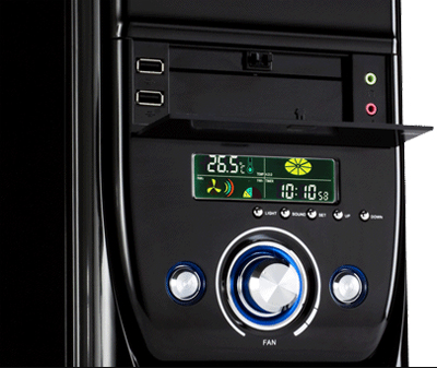 - Display de LCD com as funções de Velocidade Fan 1, 2, 3 e 4, Temperatura interna da maquina, Atividade do HD e Relógio digital.