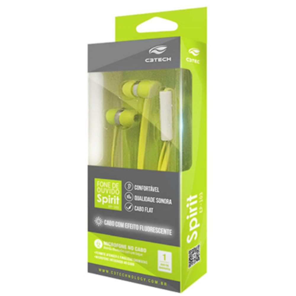 ..- Fone de ouvido com microfone C3Tech Spirit EP-103 com conector P2 de 4 vias ideal para Smartphones Android, iPhone, iPad, MP3 Player, CD Players, Micro systems, Notebooks, iPods e outros equipamentos portáteis.