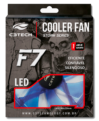 ..- Cooler C3Tech F7 Storm series de 14 x 14 cm indicado para uso em gabinetes gamers de alta performance.