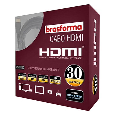 Cabo HDMI Ultra HD 4K Brasforma 3D 2.0v c/ Ethernet 30m