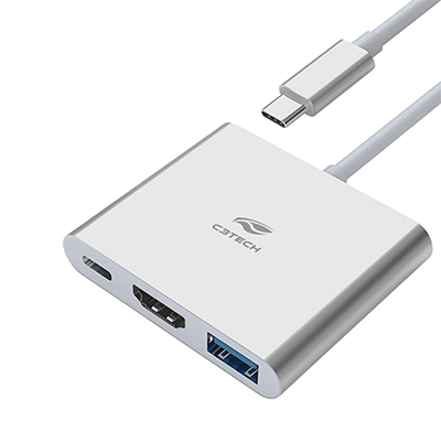 ..- Dockstation HUB USB-C C3Tech HU-D10SI, com 1 porta USB 3.0, 1 porta HDMI 4k e 1 porta USB-C Power delivery, ideal para recarregar seus dispositivos.