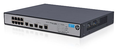 ..- Switch HP 1910-8-PoE+ (JG537A), em formato de unidade rack, ideal para pequenos ambientes empresariais.