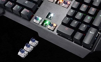 - No teclado mecânico há ausência de membrana o que da o seu som característico. Ao invés da membrana as teclas possuem eixos mecânicos que transmitem os comandos instantaneamente. Elas exigem menos força de ativação e suas molas propulsoras de aço fazem com que as teclas retornem a posição original em menos tempo, alem de possuir maior durabilidade.