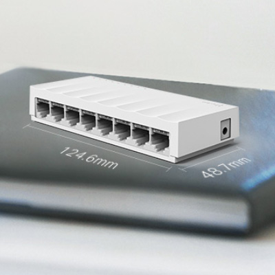 ..- Switch de mesa TP-Link LS1008(BR) (Versão 2.8), com 8 portas 10/100 Mbps, ideal escritórios de pequeno a médio porte.