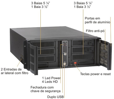 ..- Gabinete para rack de 19” com altura de 4U, para placas ATX, Micro ATX e Mini ITX.