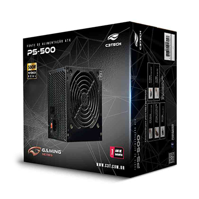 - Fonte ATX versão 2.0 500W reais C3Tech PS-500BK
