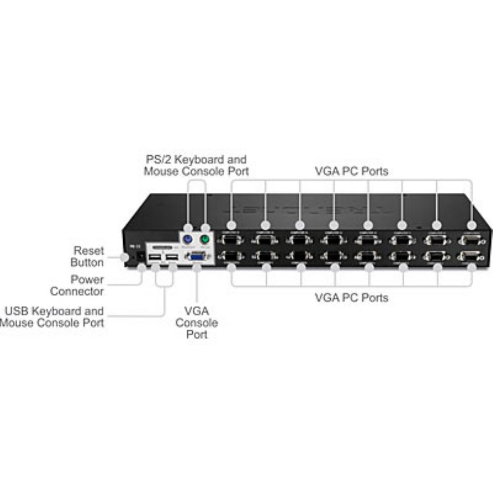 - 16 portas VGA HDB de 15-pinos (fêmea)