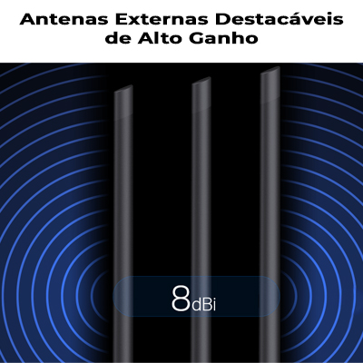 - Antenas: 3 antenas destacáveis de 8 dBi de alto ganho