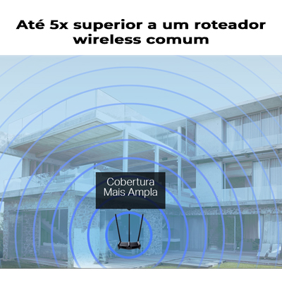 - Amplificadores de alta potência independentes geram potência transmissão significativamente aumentada com até 1000 mw, ou seja, é até 5x superior a um roteador wireless comum.
